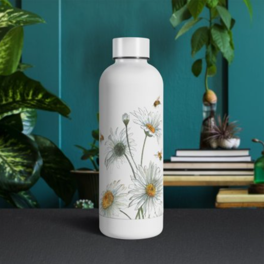 A stainless steel drinks bottle with a flower inspired design of a Daisy. Part of the Bee-Tanical range, these water bottles are a great gift idea for a birthday or mothers day. Whether its filled with that first coffee of the day or a refreshing cool drink, this bottle is perfect for on the go!